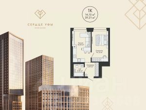 Ваша будущая 1 комнатная квартира 39,21 кв.м. с продуманной планировкой: