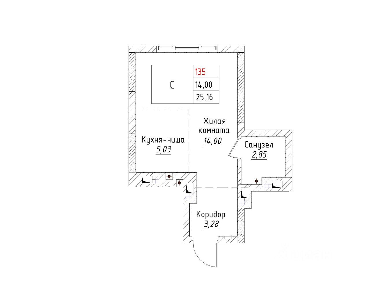 Общая площадь25,16 м²
