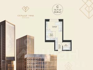 Ваша будущая студия 26,86 кв.м. с продуманной планировкой: