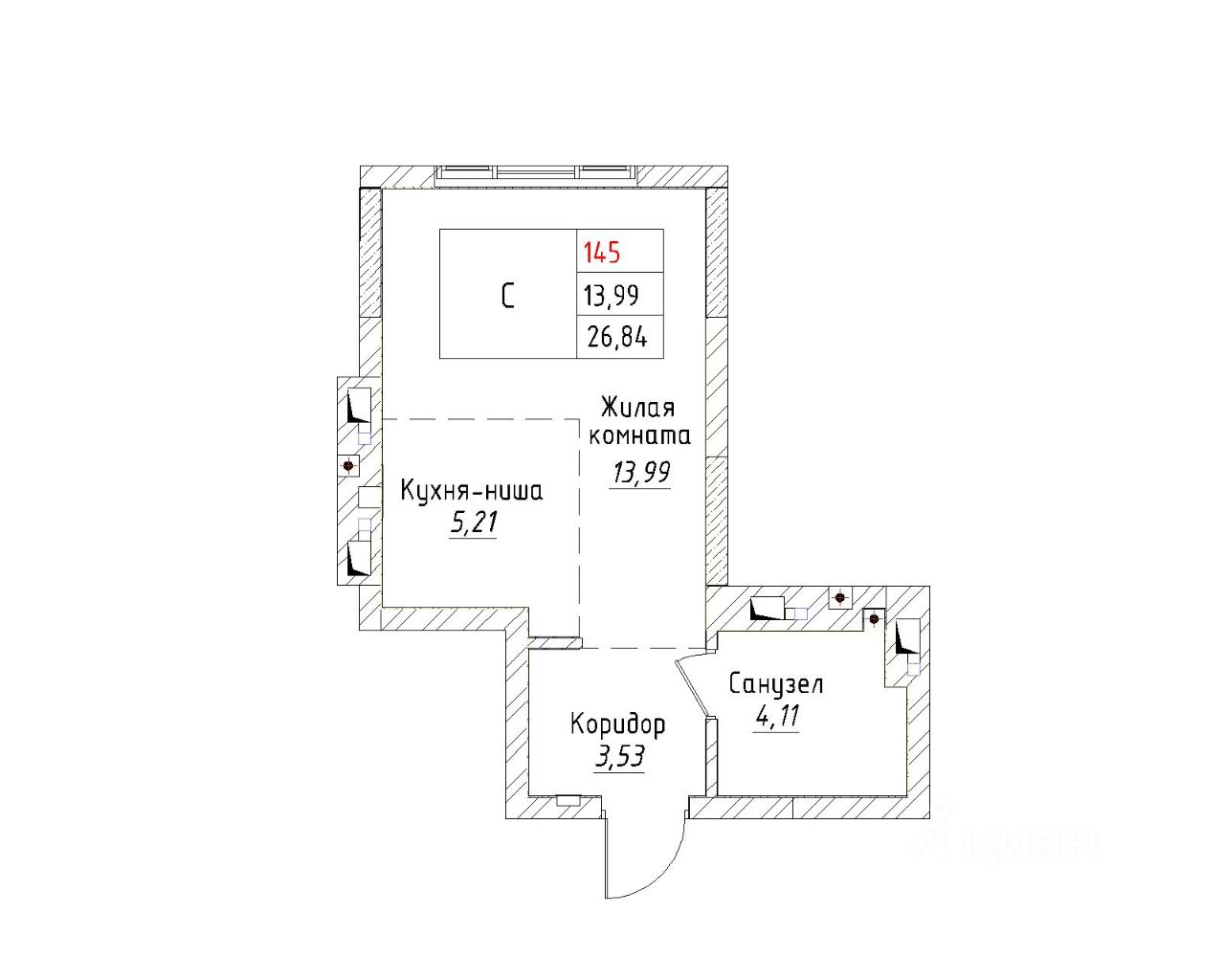 Общая площадь26,84 м²