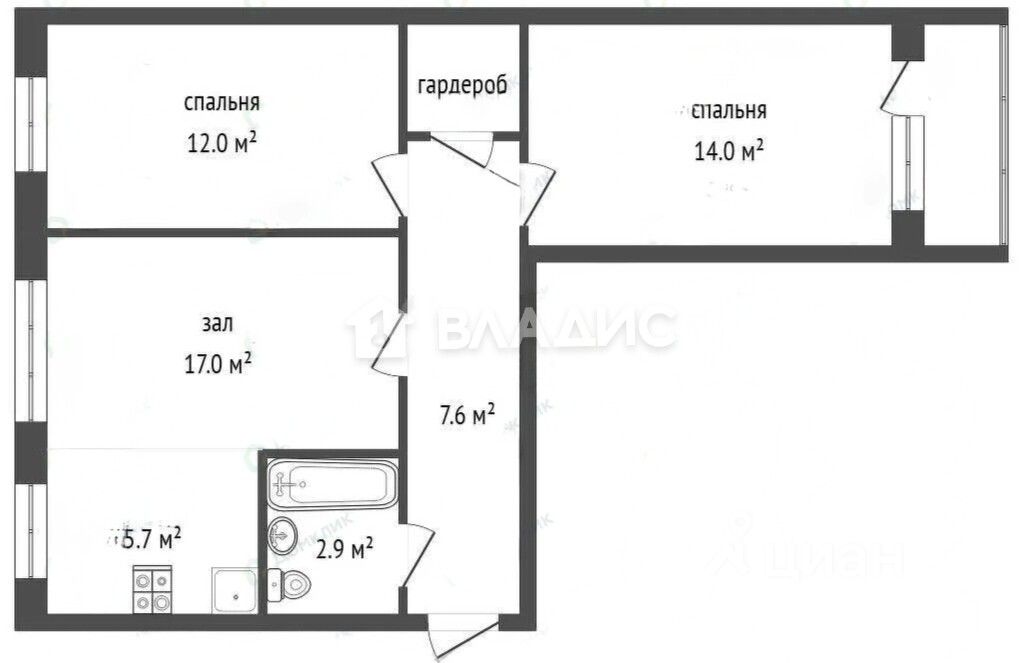 5,7 м²