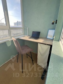 — Балкон: стол с полками для работы и хранения, освещение, съемные шторы на летнее время, на полу ковролин