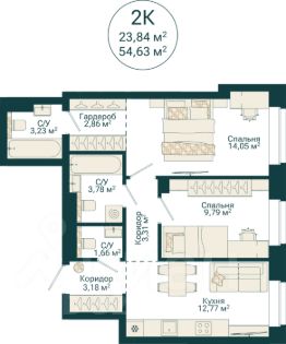 спальня — 14,05; 9,79 кв.м.