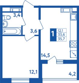 Общая площадь35,7 м²