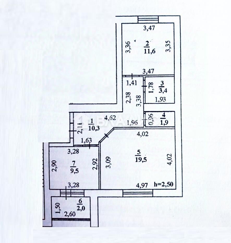 Высота потолков: 2,5 м.