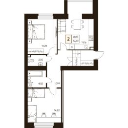 Продаётся 2-комнатная квартира в сданном доме (Дом 3), срок сдачи: IV-кв. 2025, общей площадью 66.72 кв.м., на 1 этаже.