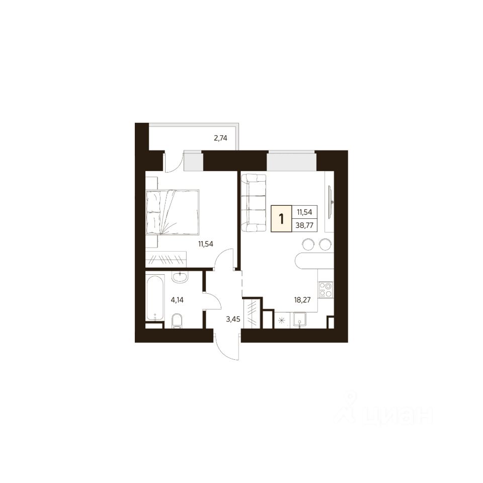 Продаётся 1-комнатная квартира в строящемся доме (Дом 2), срок сдачи: I-кв. 2026, общей площадью 38.77 кв.м., на 8 этаже.