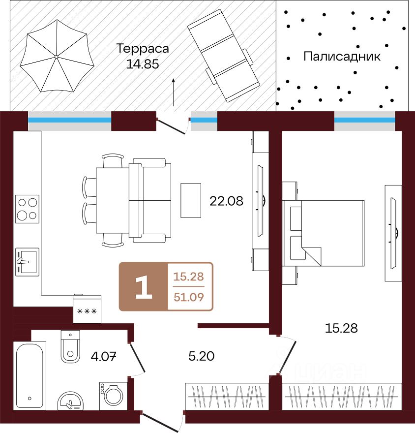 Продаётся 1-комнатная квартира в строящемся доме (литер 1), срок сдачи: III-кв. 2026, общей площадью 51.09 кв.м., на 1 этаже. Новый жилой комплекс "ЯРАТАУ" от застройщика "СЗ НВ - 1" расположен по адресу Россия, Республика Башкортостан, Иглинский район, село Акбердино, Газпромовская улица.