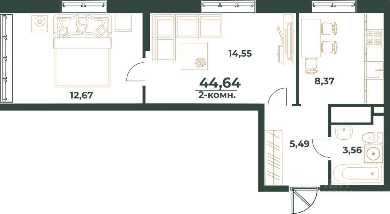 Продаётся 2-комнатная квартира в строящемся доме (квартал 3 дом 3), срок сдачи: I-кв. 2027, общей площадью 44.64 кв.м., на 8 этаже. Жилой комплекс "Город природы" - крупнейший в Уфе градостроительный проект комплексного развития территории в 8 км от центра города. Свободный от застройки новый район площадью 266 га располагается в экологически благоприятной природной зоне непосредственно на левом берегу старицы реки Белой.