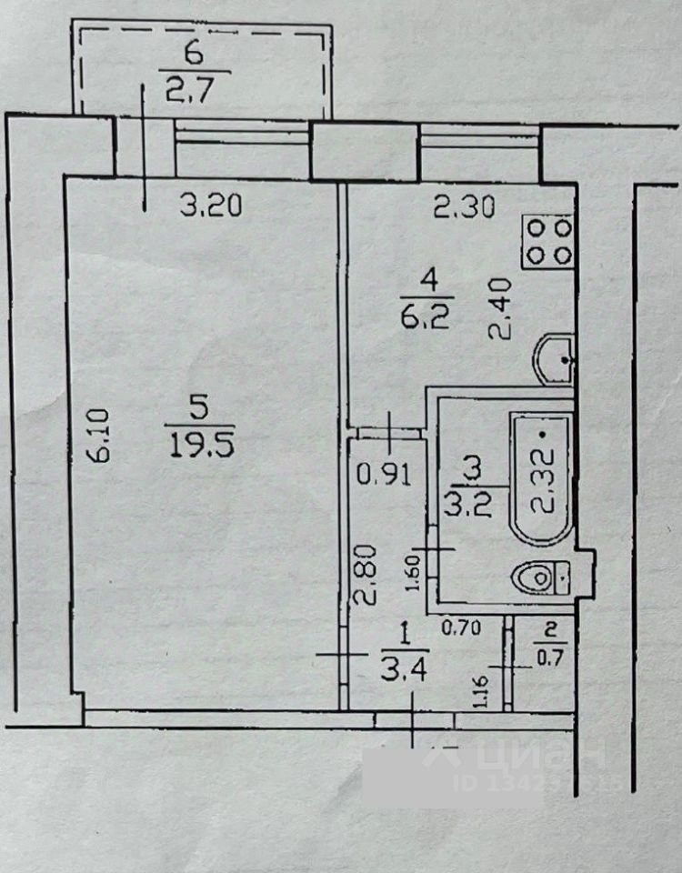 Арт. 132044477 Продаётся просторная однокомнатная квартира в кирпичном доме,