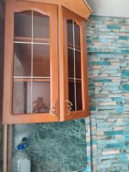 На кухне остаётся кухонный гарнитур и холодильник.