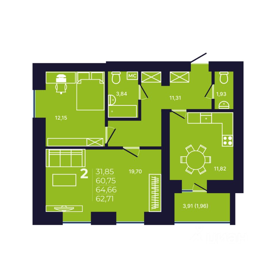 Продаётся 2-комнатная квартира в сданном доме (Литер 13, Квартал 21), срок сдачи: IV-кв. 2025, общей площадью 62.71 кв.м., на 12 этаже. NOVALAND - это новый масштабный проект микрорайона на берегу реки с современной архитектурой и развитой инфраструктурой: школами, детскими садами, поликлиниками, банками, магазинами, почтой и пр. Микрорайон расположен в черте города, в 7 минутах от Проспекта Октября, в 10 км от исторической части Уфы. Предусмотрены парковочные места на внутриквартальных дорогах дублерах.Это надежные дома комфорт-класса с оптимальной высотой от 8 до 25 этажей со своими спортивными зонами и детскими площадками. Функциональные планировки квартир и продуманная придомовая территория сделают проживание в микрорайоне NOVALAND максимально комфортным и безопасным.Дворы, закрытые шлагбаумом, исключают выход детей на проезжую часть, в каждом доме консьерж и установлено видеонаблюдение. На окнах домов установлены детские замки.Полы покрыты линолеумом, натяжные потолки, лучевая разводка системы отопления, установлены сантехника, биметаллические радиаторы, на окнах детские замки, лоджии с витражным остеклением.