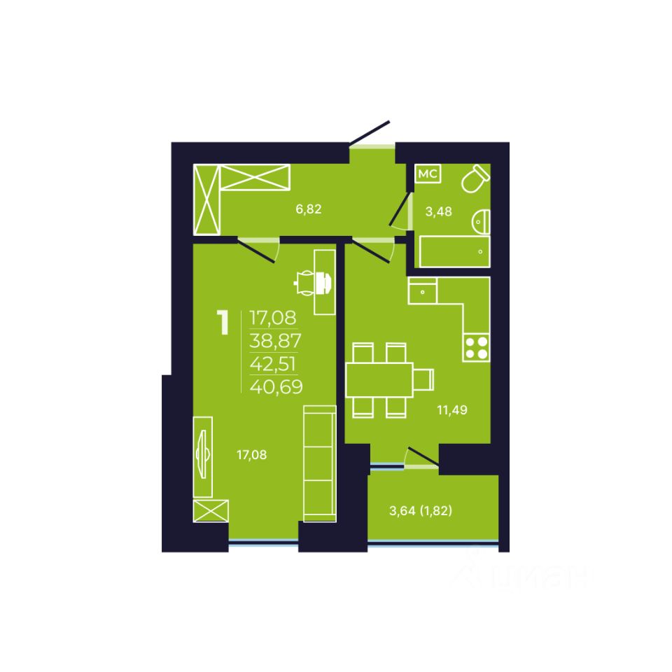 Продаётся 1-комнатная квартира в сданном доме (Литер 13, Квартал 21), срок сдачи: IV-кв. 2025, общей площадью 40.69 кв.м., на 6 этаже. NOVALAND - это новый масштабный проект микрорайона на берегу реки с современной архитектурой и развитой инфраструктурой: школами, детскими садами, поликлиниками, банками, магазинами, почтой и пр. Микрорайон расположен в черте города, в 7 минутах от Проспекта Октября, в 10 км от исторической части Уфы. Предусмотрены парковочные места на внутриквартальных дорогах дублерах.Это надежные дома комфорт-класса с оптимальной высотой от 8 до 25 этажей со своими спортивными зонами и детскими площадками. Функциональные планировки квартир и продуманная придомовая территория сделают проживание в микрорайоне NOVALAND максимально комфортным и безопасным.Дворы, закрытые шлагбаумом, исключают выход детей на проезжую часть, в каждом доме консьерж и установлено видеонаблюдение. На окнах домов установлены детские замки.Полы покрыты линолеумом, натяжные потолки, лучевая разводка системы отопления, установлены сантехника, биметаллические радиаторы, на окнах детские замки, лоджии с витражным остеклением.