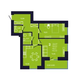 Продаётся 2-комнатная квартира в сданном доме (Литер 13, Квартал 21), срок сдачи: IV-кв. 2025, общей площадью 62.32 кв.м., на 2 этаже. NOVALAND - это новый масштабный проект микрорайона на берегу реки с современной архитектурой и развитой инфраструктурой: школами, детскими садами, поликлиниками, банками, магазинами, почтой и пр. Микрорайон расположен в черте города, в 7 минутах от Проспекта Октября, в 10 км от исторической части Уфы. Предусмотрены парковочные места на внутриквартальных дорогах дублерах.Это надежные дома комфорт-класса с оптимальной высотой от 8 до 25 этажей со своими спортивными зонами и детскими площадками. Функциональные планировки квартир и продуманная придомовая территория сделают проживание в микрорайоне NOVALAND максимально комфортным и безопасным.Дворы, закрытые шлагбаумом, исключают выход детей на проезжую часть, в каждом доме консьерж и установлено видеонаблюдение. На окнах домов установлены детские замки.Полы покрыты линолеумом, натяжные потолки, лучевая разводка системы отопления, установлены сантехника, биметаллические радиаторы, на окнах детские замки, лоджии с витражным остеклением.