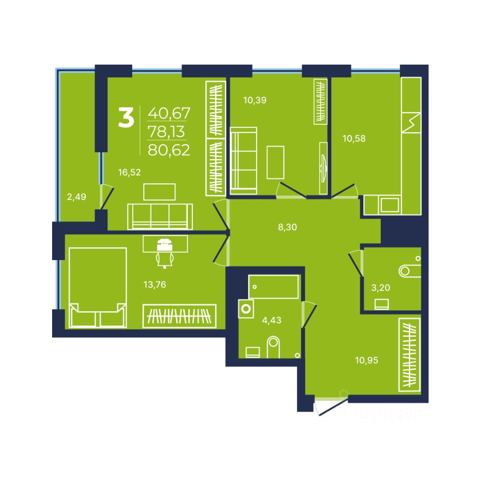 Продаётся 3-комнатная квартира в сданном доме (Литер 1, Квартал 21), срок сдачи: IV-кв. 2025, общей площадью 80.62 кв.м., на 14 этаже. NOVALAND - это новый масштабный проект микрорайона на берегу реки с современной архитектурой и развитой инфраструктурой: школами, детскими садами, поликлиниками, банками, магазинами, почтой и пр. Микрорайон расположен в черте города, в 7 минутах от Проспекта Октября, в 10 км от исторической части Уфы. Предусмотрены парковочные места на внутриквартальных дорогах дублерах.Это надежные дома комфорт-класса с оптимальной высотой от 8 до 25 этажей со своими спортивными зонами и детскими площадками. Функциональные планировки квартир и продуманная придомовая территория сделают проживание в микрорайоне NOVALAND максимально комфортным и безопасным.Дворы, закрытые шлагбаумом, исключают выход детей на проезжую часть, в каждом доме консьерж и установлено видеонаблюдение. На окнах домов установлены детские замки.Полы покрыты линолеумом, натяжные потолки, лучевая разводка системы отопления, установлены сантехника, биметаллические радиаторы, на окнах детские замки, лоджии с витражным остеклением.