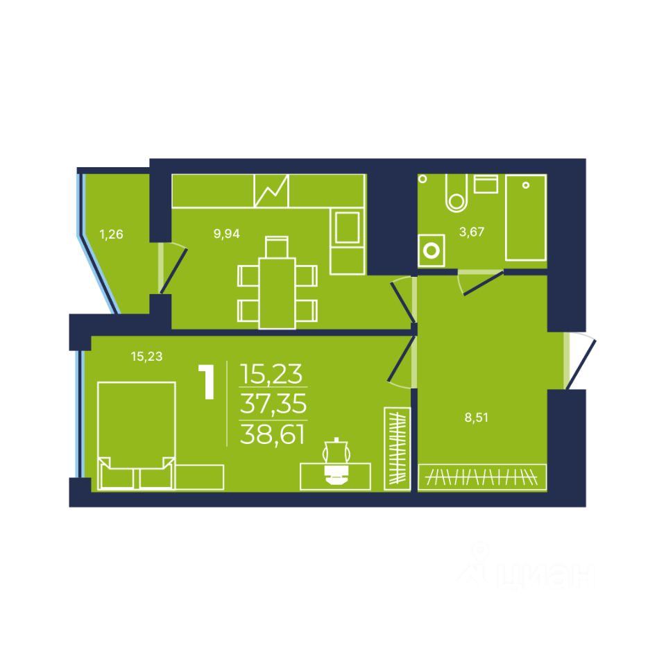Продаётся 1-комнатная квартира в сданном доме (Литер 1, Квартал 21), срок сдачи: IV-кв. 2025, общей площадью 38.61 кв.м., на 15 этаже. NOVALAND - это новый масштабный проект микрорайона на берегу реки с современной архитектурой и развитой инфраструктурой: школами, детскими садами, поликлиниками, банками, магазинами, почтой и пр. Микрорайон расположен в черте города, в 7 минутах от Проспекта Октября, в 10 км от исторической части Уфы. Предусмотрены парковочные места на внутриквартальных дорогах дублерах.Это надежные дома комфорт-класса с оптимальной высотой от 8 до 25 этажей со своими спортивными зонами и детскими площадками. Функциональные планировки квартир и продуманная придомовая территория сделают проживание в микрорайоне NOVALAND максимально комфортным и безопасным.Дворы, закрытые шлагбаумом, исключают выход детей на проезжую часть, в каждом доме консьерж и установлено видеонаблюдение. На окнах домов установлены детские замки.Полы покрыты линолеумом, натяжные потолки, лучевая разводка системы отопления, установлены сантехника, биметаллические радиаторы, на окнах детские замки, лоджии с витражным остеклением.