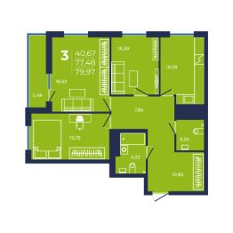 Продаётся 3-комнатная квартира в сданном доме (Литер 1, Квартал 21), срок сдачи: IV-кв. 2025, общей площадью 79.97 кв.м., на 19 этаже. NOVALAND - это новый масштабный проект микрорайона на берегу реки с современной архитектурой и развитой инфраструктурой: школами, детскими садами, поликлиниками, банками, магазинами, почтой и пр. Микрорайон расположен в черте города, в 7 минутах от Проспекта Октября, в 10 км от исторической части Уфы. Предусмотрены парковочные места на внутриквартальных дорогах дублерах.Это надежные дома комфорт-класса с оптимальной высотой от 8 до 25 этажей со своими спортивными зонами и детскими площадками. Функциональные планировки квартир и продуманная придомовая территория сделают проживание в микрорайоне NOVALAND максимально комфортным и безопасным.Дворы, закрытые шлагбаумом, исключают выход детей на проезжую часть, в каждом доме консьерж и установлено видеонаблюдение. На окнах домов установлены детские замки.Полы покрыты линолеумом, натяжные потолки, лучевая разводка системы отопления, установлены сантехника, биметаллические радиаторы, на окнах детские замки, лоджии с витражным остеклением.