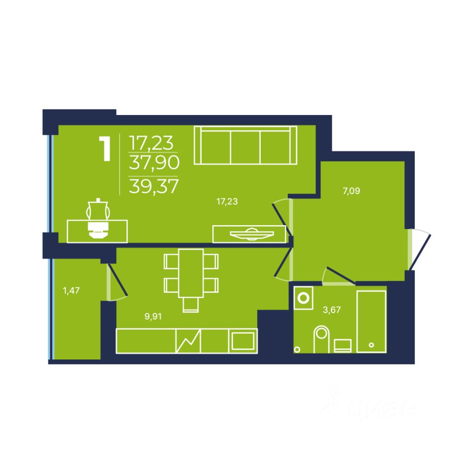 Продаётся 1-комнатная квартира в сданном доме (Литер 1, Квартал 21), срок сдачи: IV-кв. 2025, общей площадью 39.37 кв.м., на 9 этаже. NOVALAND - это новый масштабный проект микрорайона на берегу реки с современной архитектурой и развитой инфраструктурой: школами, детскими садами, поликлиниками, банками, магазинами, почтой и пр. Микрорайон расположен в черте города, в 7 минутах от Проспекта Октября, в 10 км от исторической части Уфы. Предусмотрены парковочные места на внутриквартальных дорогах дублерах.Это надежные дома комфорт-класса с оптимальной высотой от 8 до 25 этажей со своими спортивными зонами и детскими площадками. Функциональные планировки квартир и продуманная придомовая территория сделают проживание в микрорайоне NOVALAND максимально комфортным и безопасным.Дворы, закрытые шлагбаумом, исключают выход детей на проезжую часть, в каждом доме консьерж и установлено видеонаблюдение. На окнах домов установлены детские замки.Полы покрыты линолеумом, натяжные потолки, лучевая разводка системы отопления, установлены сантехника, биметаллические радиаторы, на окнах детские замки, лоджии с витражным остеклением.