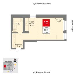 Общая площадь 35.81кв.м.;