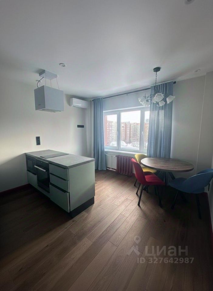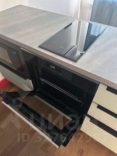 В квартире интересная планировка: большие окна, островная кухня, стол вдоль всего окна, отдельная гардеробная комната. Квартира хорошо укомплектована техникой: кухня-встроенными микроволновкой, плитой, посудомоечной машиной, большой холодильник, в ванной стиральная машина с сушкой. На случай отключения горячей воды есть водонагреватель, кондиционеры стоят на кухне и в комнате. Есть большая двухспальная кровать и диван.