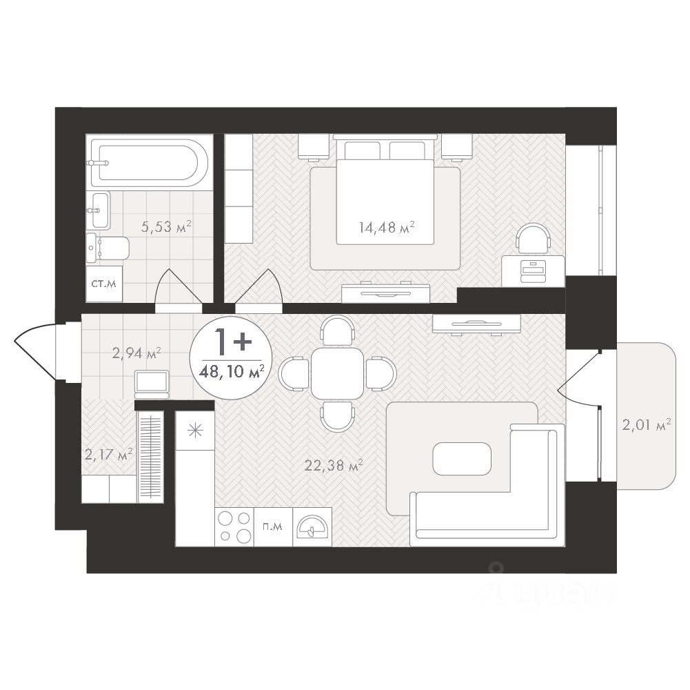 Продаётся 1-комнатная квартира в строящемся доме (Корпус 1), срок сдачи: III-кв. 2028, общей площадью 48.1 кв.м., на 7 этаже. Новый жилой комплекс "Пьермонт" от застройщика "СЗ АРТ-СИТИ" расположен по адресу Республика Башкортостан, Уфа, микрорайон Южный-2.