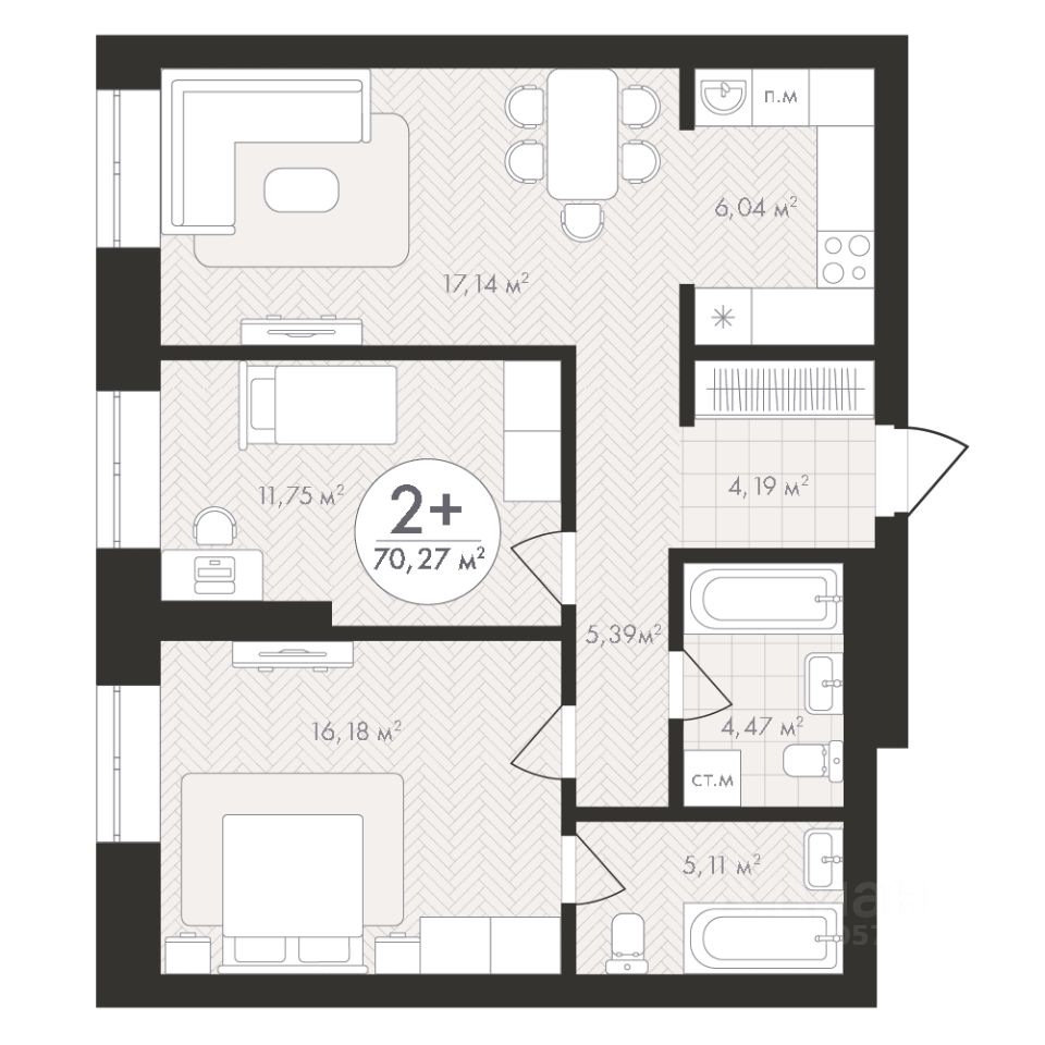 Продаётся 2-комнатная квартира в строящемся доме (Корпус 1), срок сдачи: III-кв. 2028, общей площадью 70.27 кв.м., на 9 этаже. Новый жилой комплекс "Пьермонт" от застройщика "СЗ АРТ-СИТИ" расположен по адресу Республика Башкортостан, Уфа, микрорайон Южный-2.