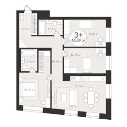 Продаётся 3-комнатная квартира в строящемся доме (Корпус 1), срок сдачи: III-кв. 2028, общей площадью 90.09 кв.м., на 12 этаже. Новый жилой комплекс "Пьермонт" от застройщика "СЗ АРТ-СИТИ" расположен по адресу Республика Башкортостан, Уфа, микрорайон Южный-2.