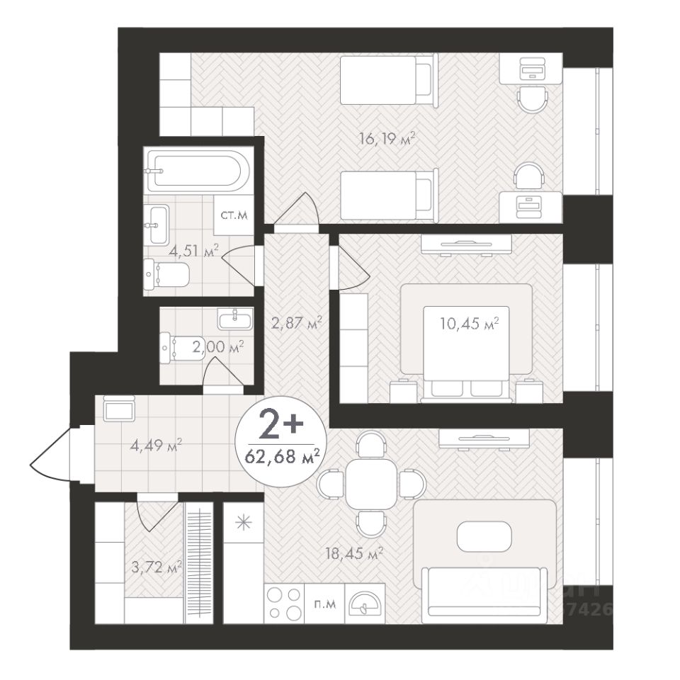 Продаётся 2-комнатная квартира в строящемся доме (Корпус 1), срок сдачи: III-кв. 2028, общей площадью 62.68 кв.м., на 14 этаже. Новый жилой комплекс "Пьермонт" от застройщика "СЗ АРТ-СИТИ" расположен по адресу Республика Башкортостан, Уфа, микрорайон Южный-2.