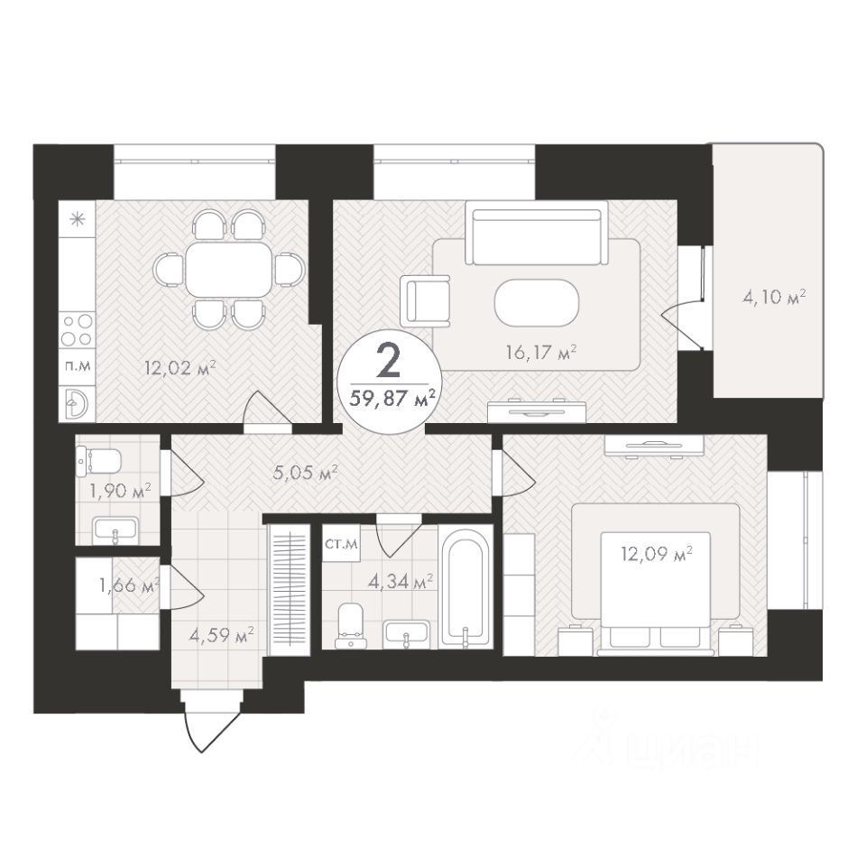 Продаётся 2-комнатная квартира в строящемся доме (Корпус 1), срок сдачи: III-кв. 2028, общей площадью 59.87 кв.м., на 15 этаже. Новый жилой комплекс "Пьермонт" от застройщика "СЗ АРТ-СИТИ" расположен по адресу Республика Башкортостан, Уфа, микрорайон Южный-2.