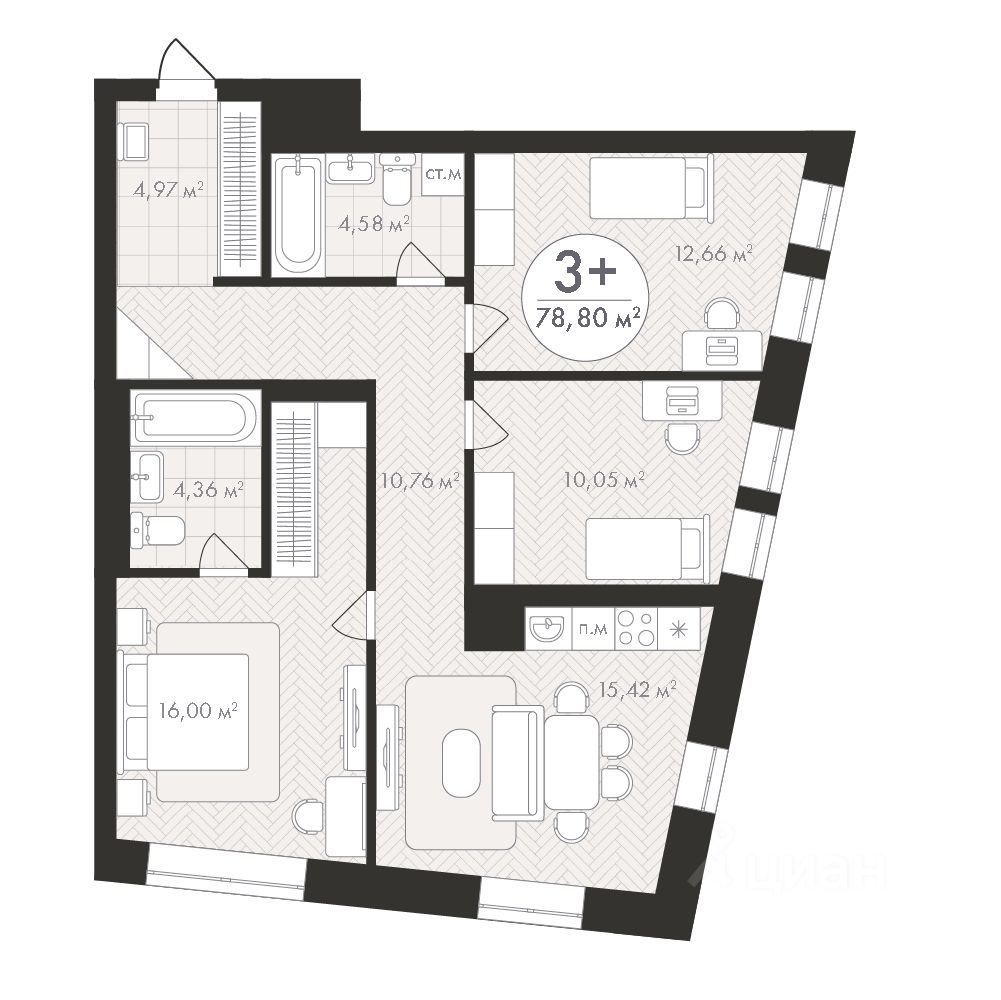 Продаётся 3-комнатная квартира в строящемся доме (Корпус 1), срок сдачи: III-кв. 2028, общей площадью 78.8 кв.м., на 17 этаже. Новый жилой комплекс "Пьермонт" от застройщика "СЗ АРТ-СИТИ" расположен по адресу Республика Башкортостан, Уфа, микрорайон Южный-2.