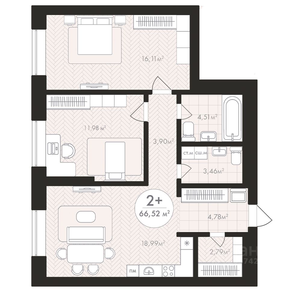 Продаётся 2-комнатная квартира в строящемся доме (Корпус 1), срок сдачи: III-кв. 2028, общей площадью 66.52 кв.м., на 2 этаже. Новый жилой комплекс "Пьермонт" от застройщика "СЗ АРТ-СИТИ" расположен по адресу Республика Башкортостан, Уфа, микрорайон Южный-2.