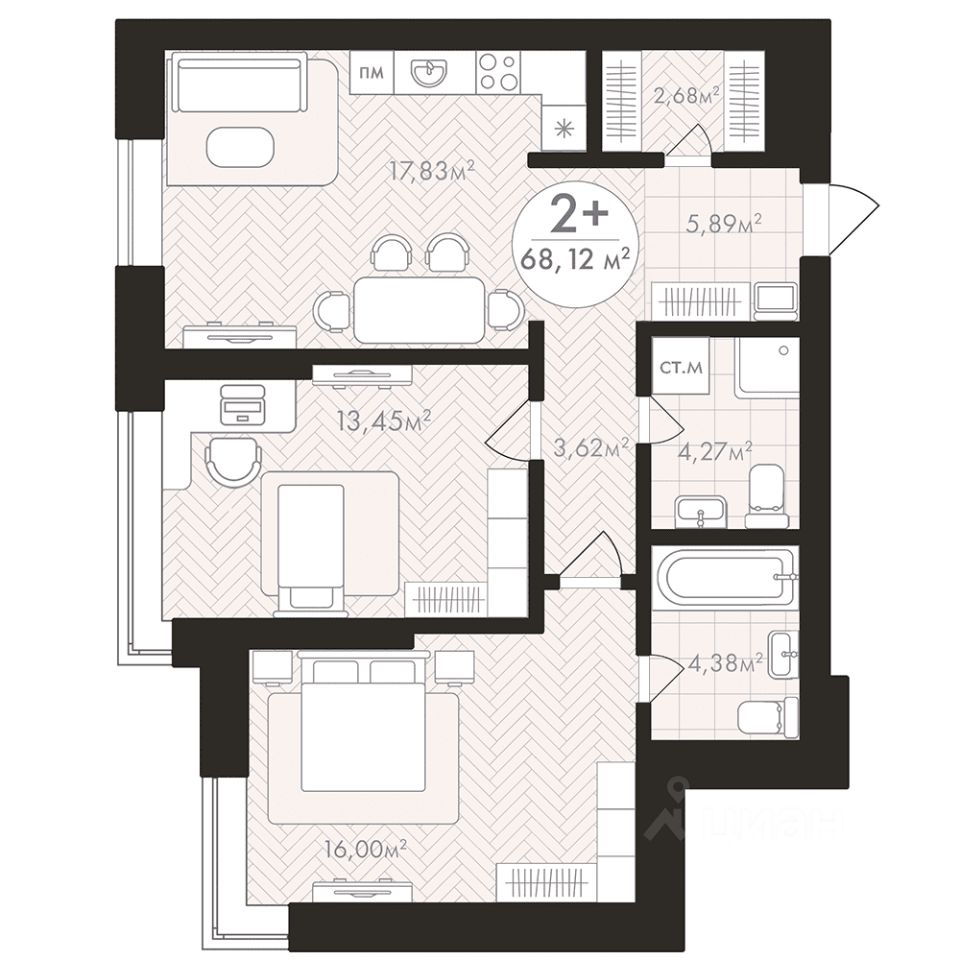 Продаётся 2-комнатная квартира в строящемся доме (Корпус 1), срок сдачи: III-кв. 2028, общей площадью 68.12 кв.м., на 8 этаже. Новый жилой комплекс "Пьермонт" от застройщика "СЗ АРТ-СИТИ" расположен по адресу Республика Башкортостан, Уфа, микрорайон Южный-2.
