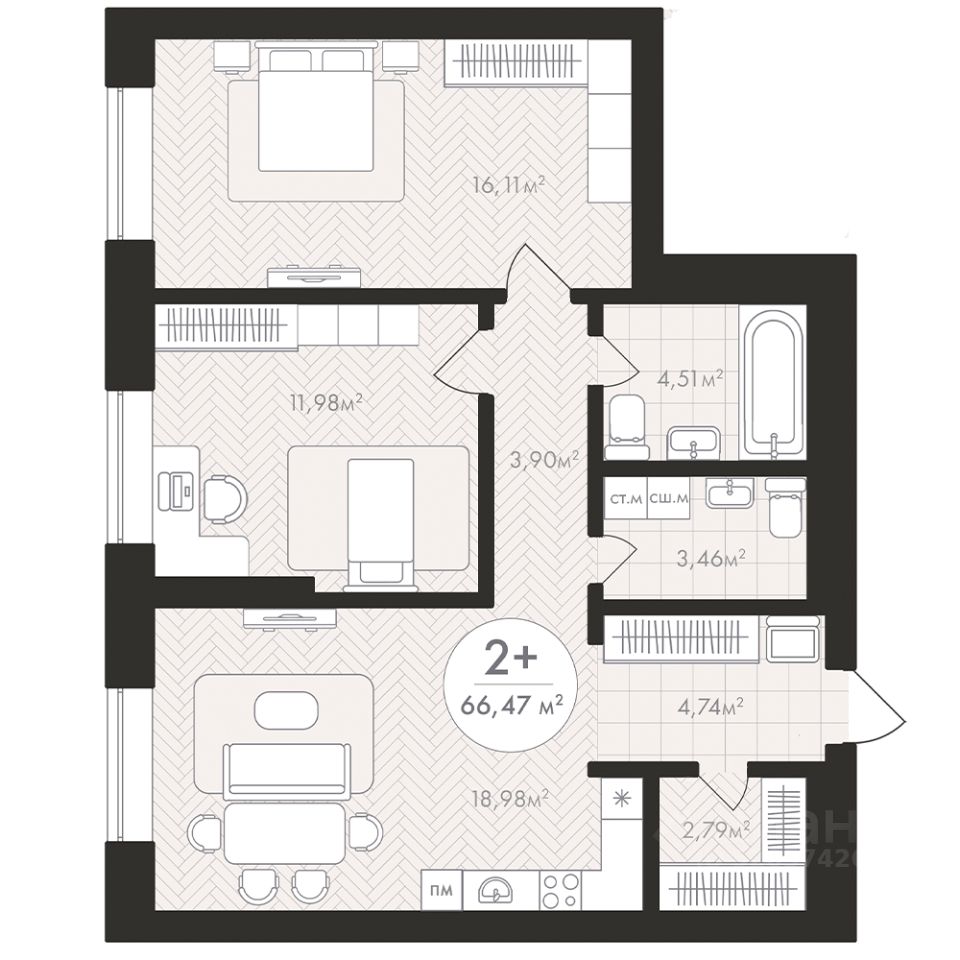 Продаётся 2-комнатная квартира в строящемся доме (Корпус 1), срок сдачи: III-кв. 2028, общей площадью 66.47 кв.м., на 21 этаже. Новый жилой комплекс "Пьермонт" от застройщика "СЗ АРТ-СИТИ" расположен по адресу Республика Башкортостан, Уфа, микрорайон Южный-2.