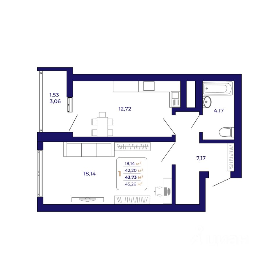 Продаётся 1-комнатная квартира в строящемся доме (Литер 3 ), срок сдачи: III-кв. 2026, общей площадью 43.73 кв.м., на 5 этаже. Современный жилой комплекс "Паруса"