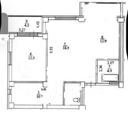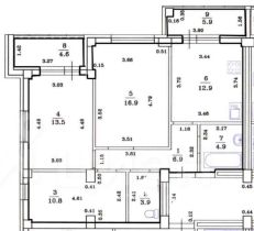 общая с учетом балкона и лоджии— 80 кв.м., жилая — 42кв.м.