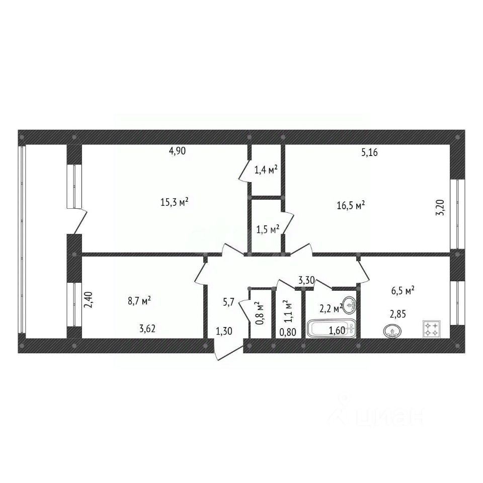 Планировка данной квартиры особо удобная для проживания: