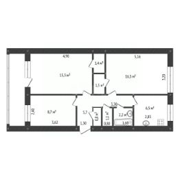 - Комната 16,5 кВм с кладовой зоной