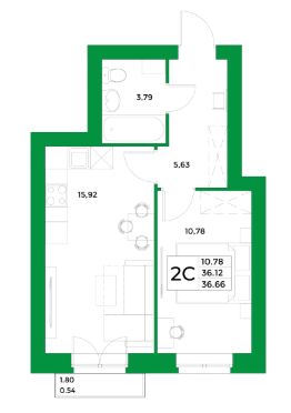 - жилая площадь 10.78 кв. м., кухня 15.92 кв. м..