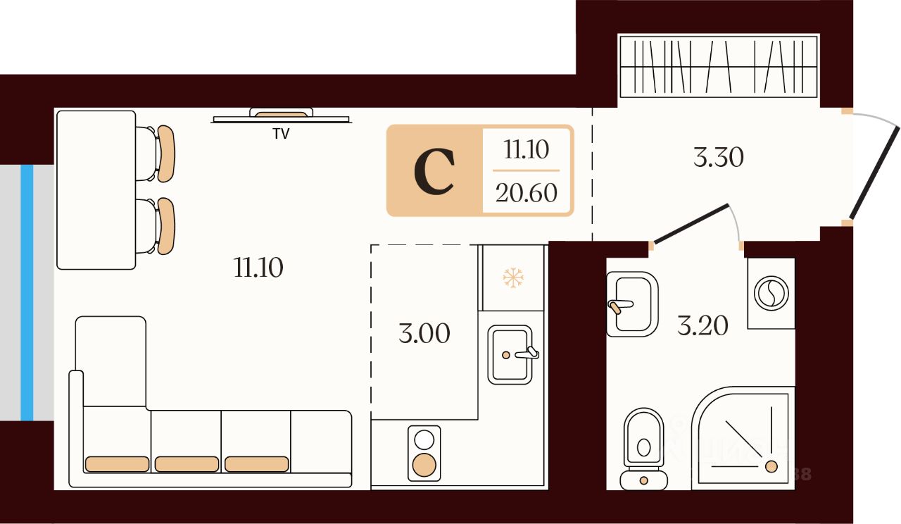 Общая площадь20,6 м²