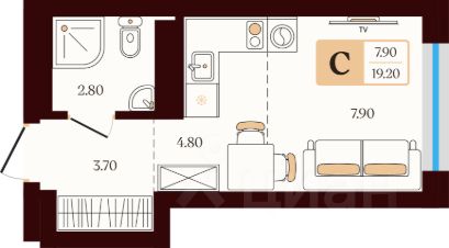 Общая площадь19,2 м²