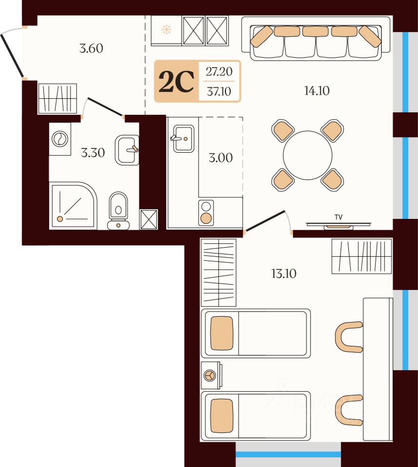 Общая площадь37,1 м²