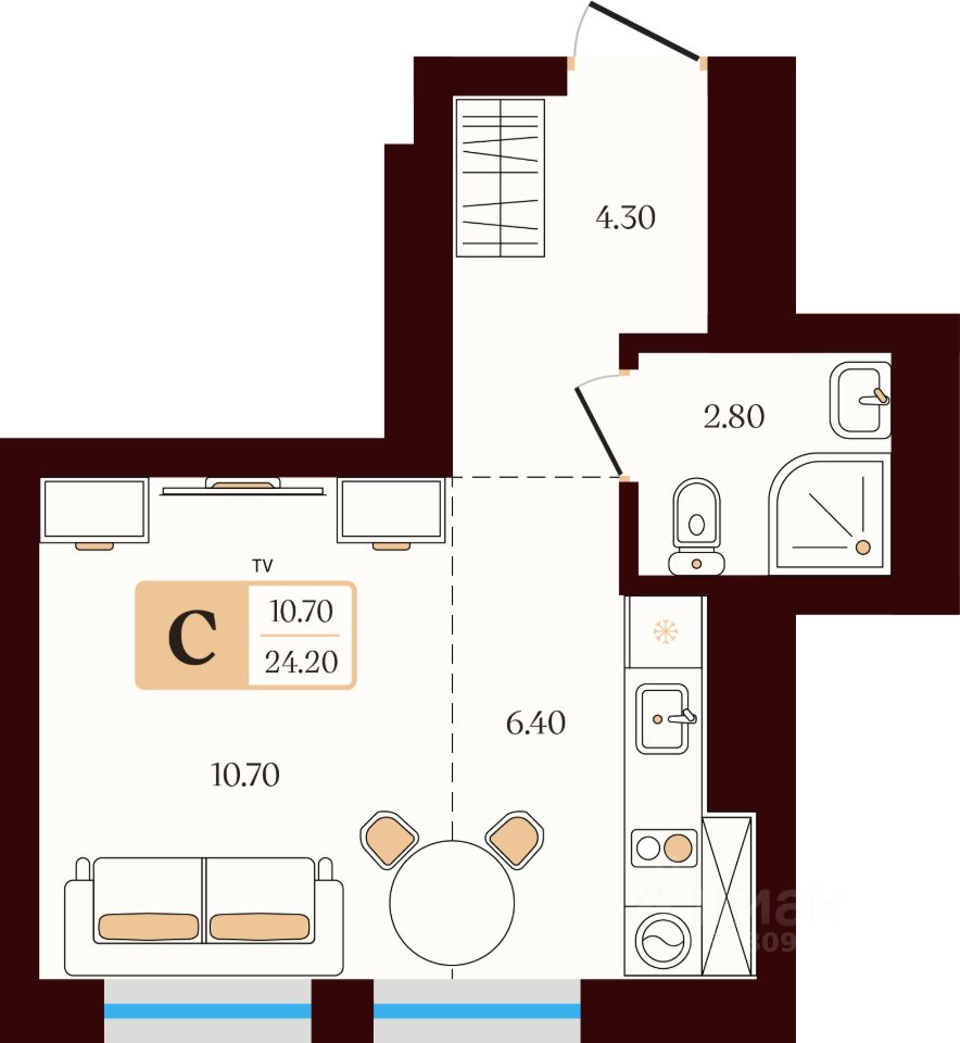 Общая площадь24,2 м²