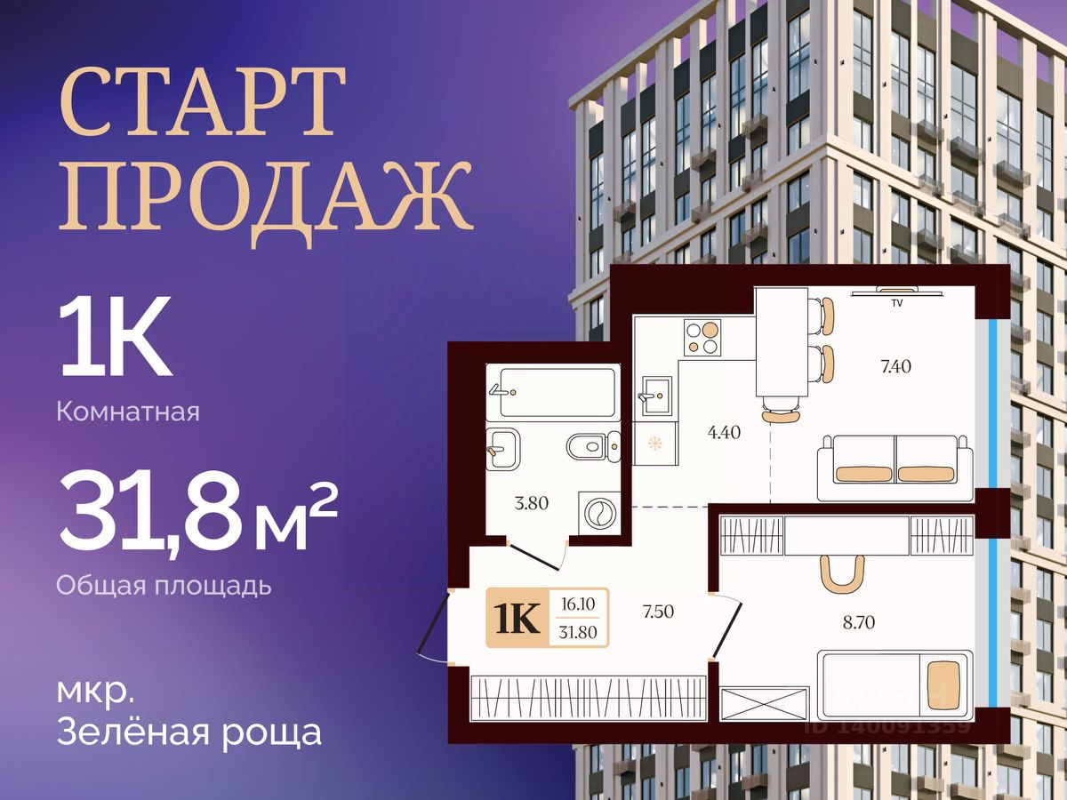 Приобретайте полноценную однокомнатную в микрорайоне Зеленая роща на начальном этапе строительства.