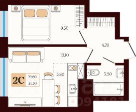 Жилая площадь19,6 м²