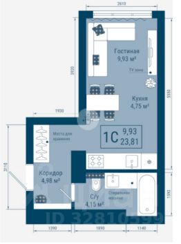 • Общая площадь: 23,8 м²
