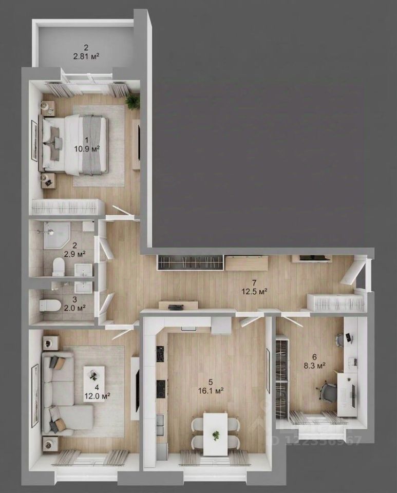 Площадь комнат