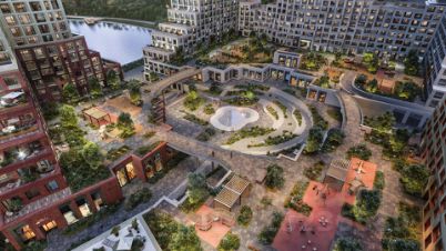 Второй - частное пространство для отдыха жильцов с концептуальными детскими и спортивными зонами. Наслаждайтесь видами на озеро со смотровой площадки и прогулками среди зелёных композиций.
