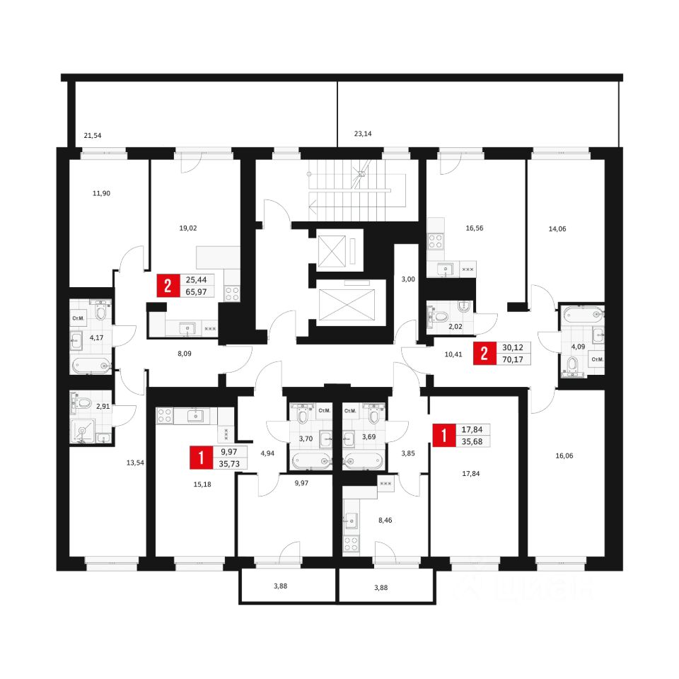 35,68 м²
