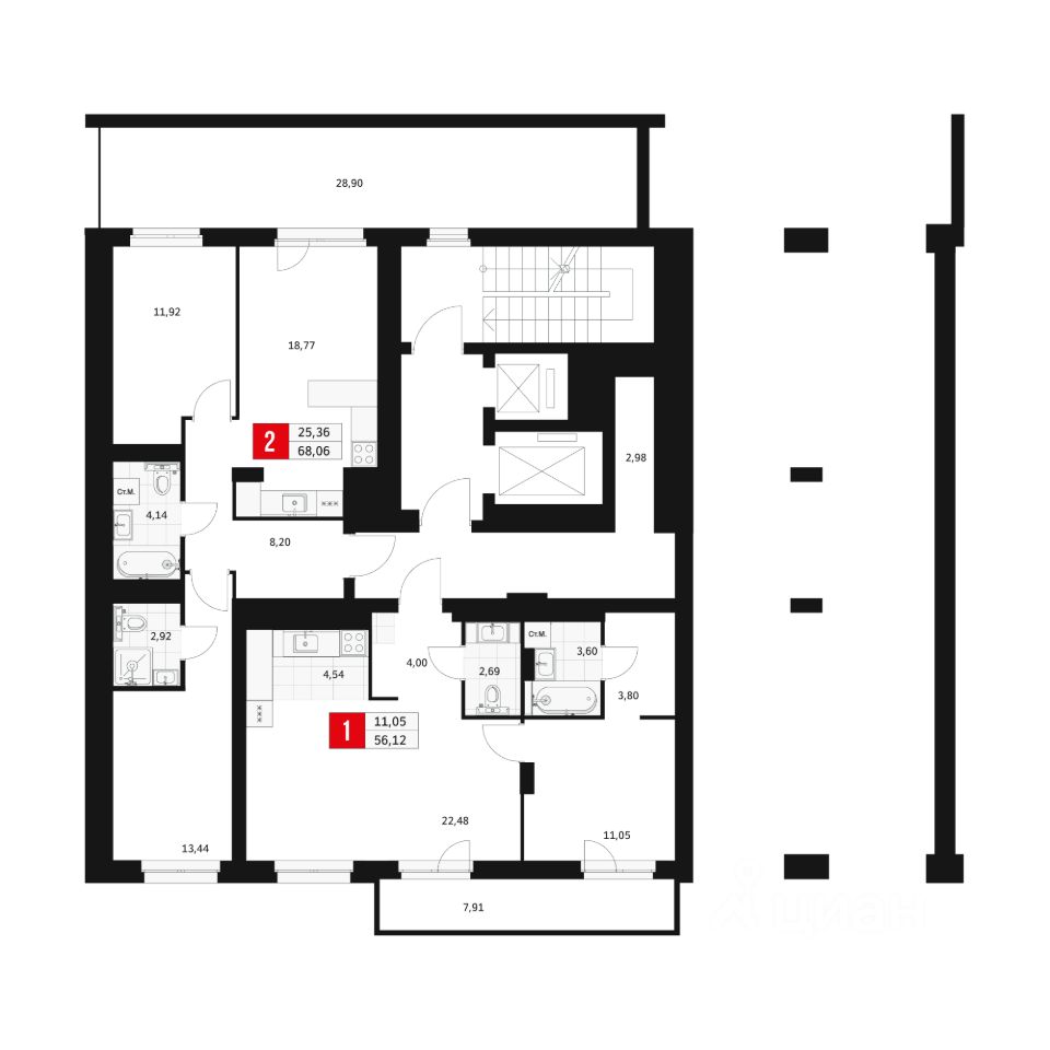 Общая площадь56,12 м²