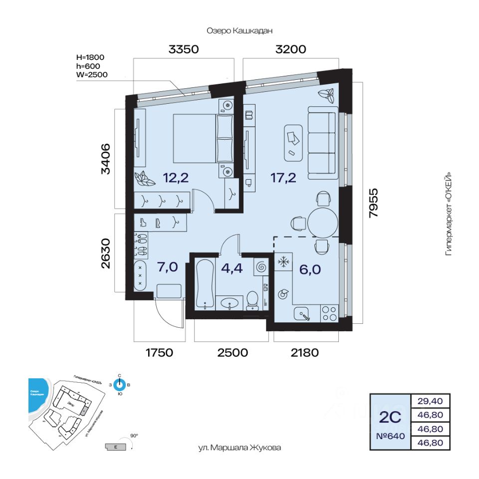 Общая площадь 46.80кв.м.;